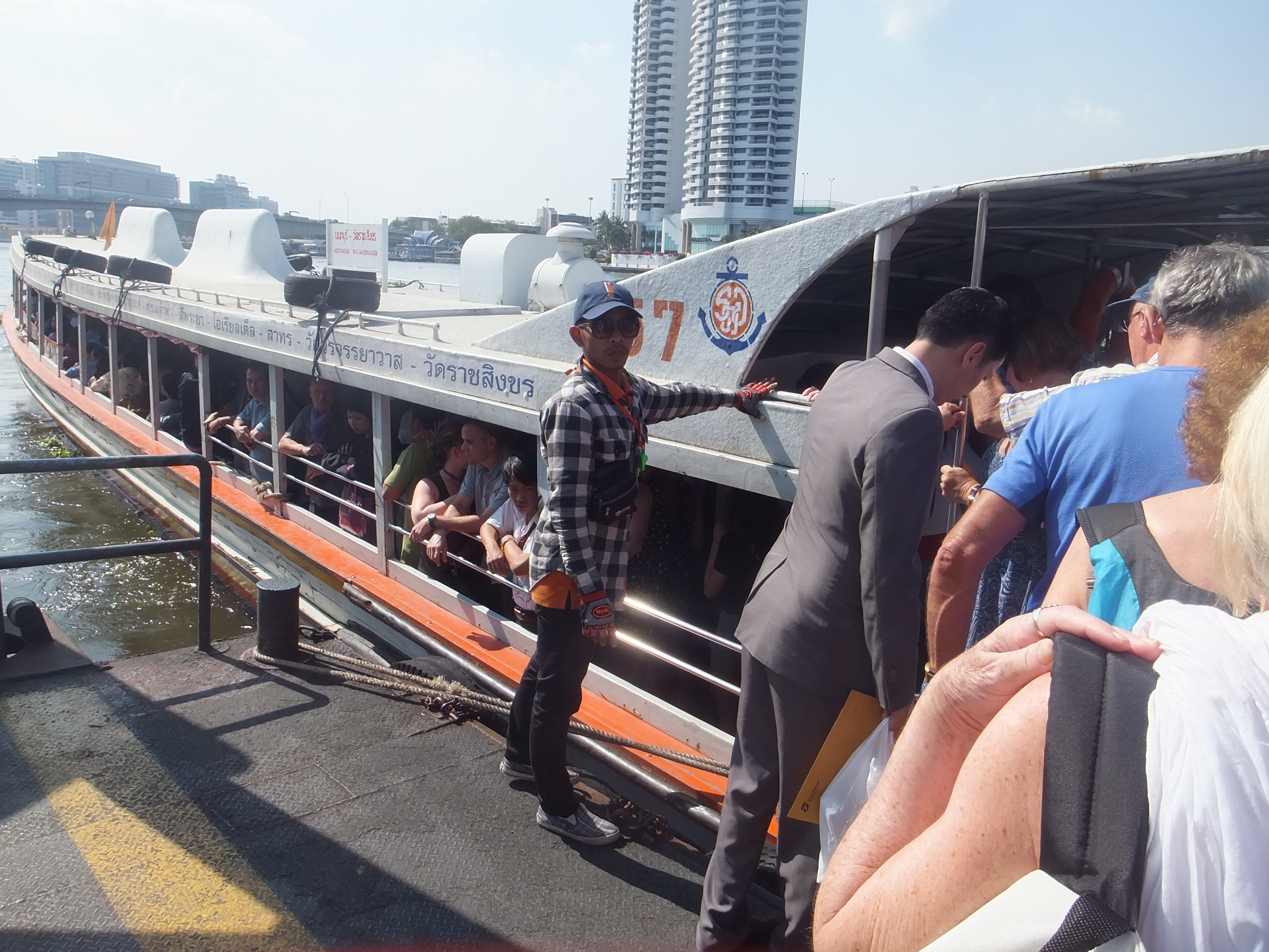Zu Anfang ist das Bootfahren etwas gewöhnungsbedürftig, da man von einem Thai mit Trillerpfeife regelrecht auf das Boot gescheucht wird (während es teilweise schon weiter fährt). Aber auch daran haben wir uns schnell gewöhnt und haben das Spektakel bei jedem Stopp an einem Pier belustigt verfolgt. 🙂