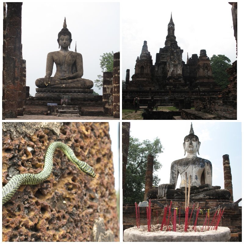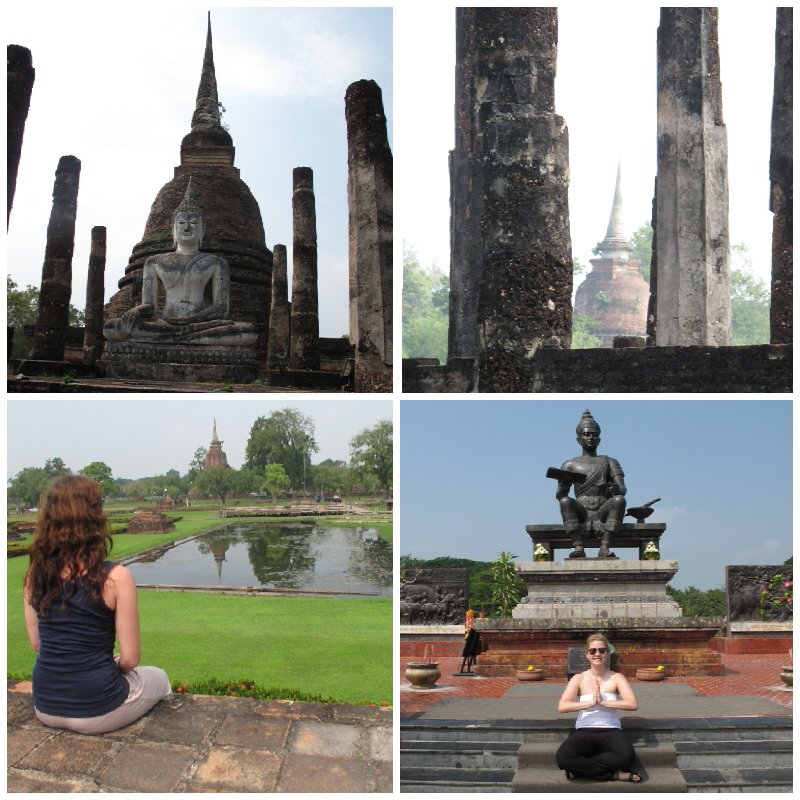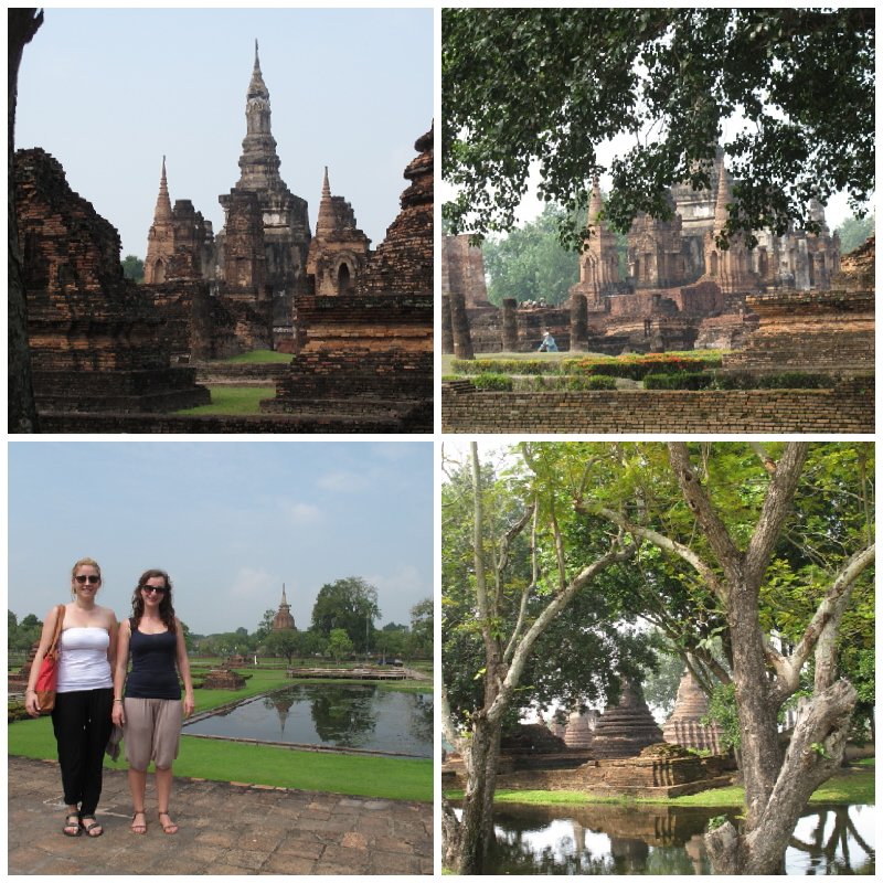 Wir sind am Montagabend fünf Stunden mit dem Bus von Chiang Mai nach Sukhothai gefahren. Im Hotel angekommen ging es postwendend (2 Uhr nachts) ins gemütliche Bett. Juhu morgen ausschlafen – dachten wir uns! Um 8 Uhr morgens wurde im Nebenzimmer eine Kernsanierung durchgeführt! Unter anderem wurde ein Schlagbohrer eingesetzt, der sogar die, mit Ohrstöpseln ausgestattete, Stefanie grausam aus dem Tiefschlaf riss! Nach einer kleinen Beschwerde bekamen wir ein größeres, ruhigeres Superior Zimmer im Obergeschoss für weniger Geld als das Ursprüngliche 🙂